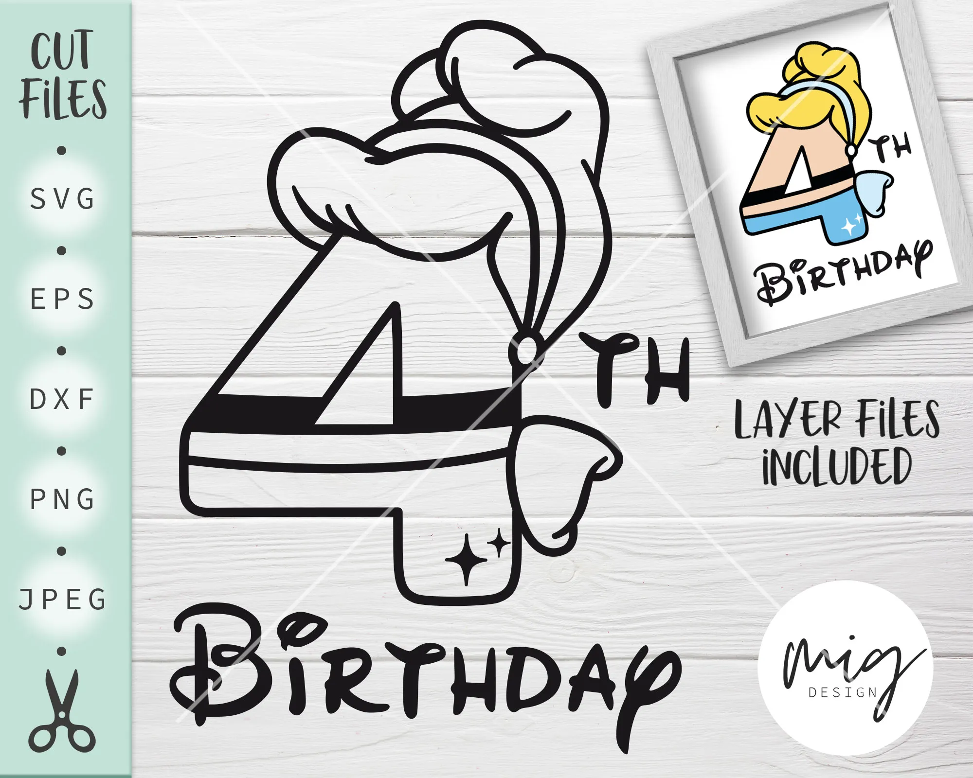 Number 4th birthday design for a Princess, perfect for a princess party.